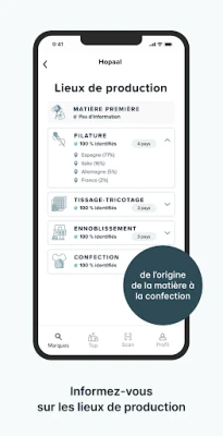 For each garment, the app provides an assessment based on composition, labels, brand practices, production locations, and audits.