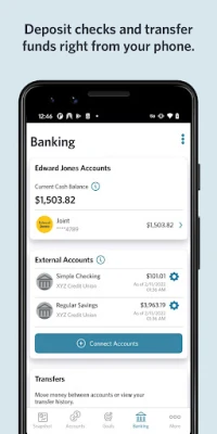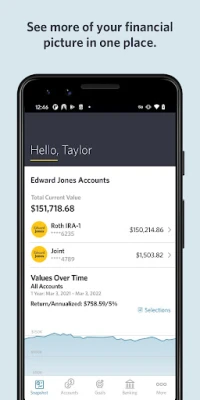 • View your account holdings, performance, activity and more • Connect accounts to view balances held outside of Edward Jones • Track progress toward your goals • Message and share documents with your Edward Jones team • Deposit checks and transfer funds • View and sign documents related to your Edward Jones accounts