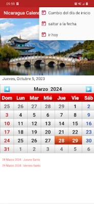 Nicaragua Calendario 2024 con Días Festivos 2023 - 2028.