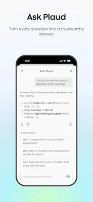 - Ask Plaud: Get reference-based answers, generate insights, and save as notes