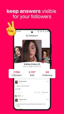 Tellonym is a simple way to feel closer to your friends: ask anything, answer anonymous questions, receive honest feedback, and get to know yourself and your friends better!