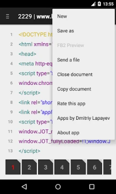 Implemented: 1) the ability to open files in different encodings; 2) auto-detect encodigs: • KOI8-R • MACCYRILLIC • IBM866 • IBM855 • WINDOWS-1251 • WINDOWS-1252 • WINDOWS-1253 • WINDOWS-1255 • ISO-8859-5 • ISO-8859-7 • ISO-8859-8 • ISO-2022-CN • ISO-2022-JP • ISO-2022-KR • BIG-5 • UTF-8 • UTF-16BE | UTF-16LE • UTF-32BE | UTF-32LE 3) saving file with selected encoding; 4) creation of the new ("buffer") document; 5) open a file from another application; 6) preview of the .FB2 file; 7) sending a file (with applications: Google drive, mail...); 8) copying document in the application folder "XML Editor" (for Android 4.4 or above); 9) "find/change text" dialog (menu).